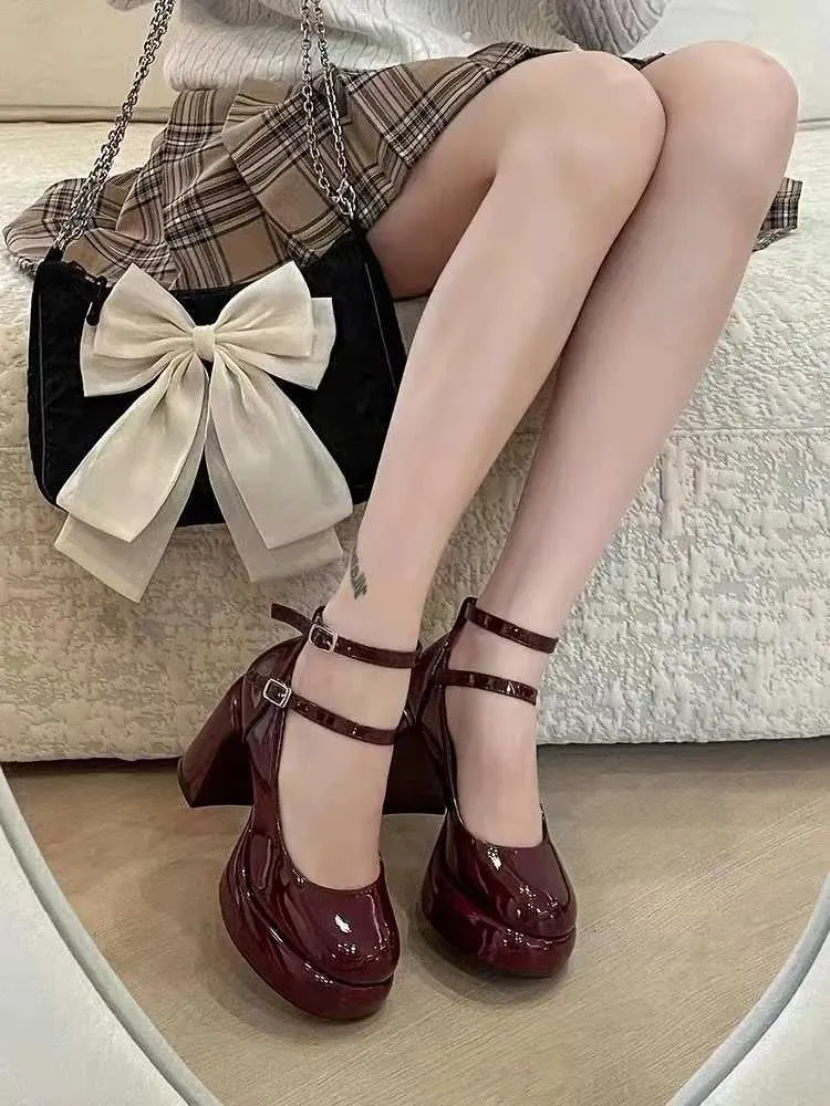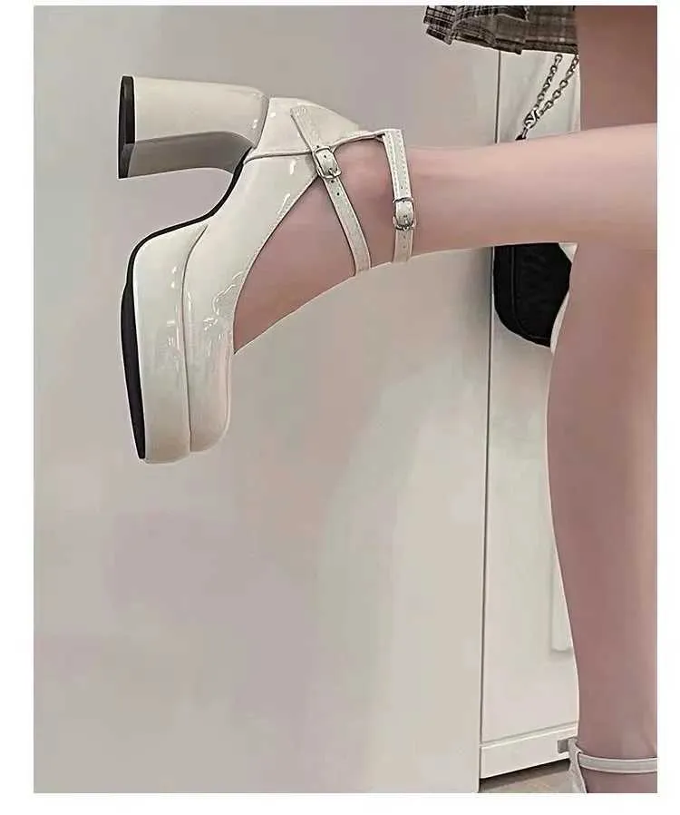 New Trend Women's Pumps Fashionable Elegant Thick Sole High Heels Mary Jane Shoes